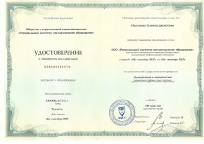 - Свидетельство о прохождении курса Актуальные вопросы пульмонологии в детском возрасте Москва 2020