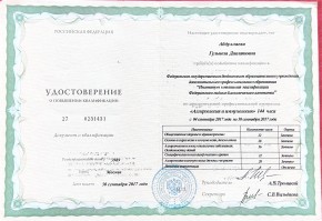 - Сертификат о прохождения курса Современные проблемы иммунологии и иммунофармакологии Москва 2017, ФГБУ ГНЦ Институт иммунологии ФМБА России