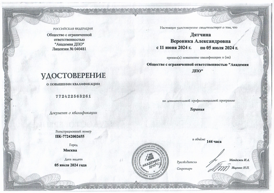 Дятчина Вероника Александровна