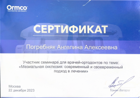 - 2023 г.- ООО стоматология Зубок , врач-ортодонт