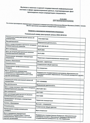 - 2025 г. – “Tерапевтическая стоматология с практикой на пациентах” г. Москва
